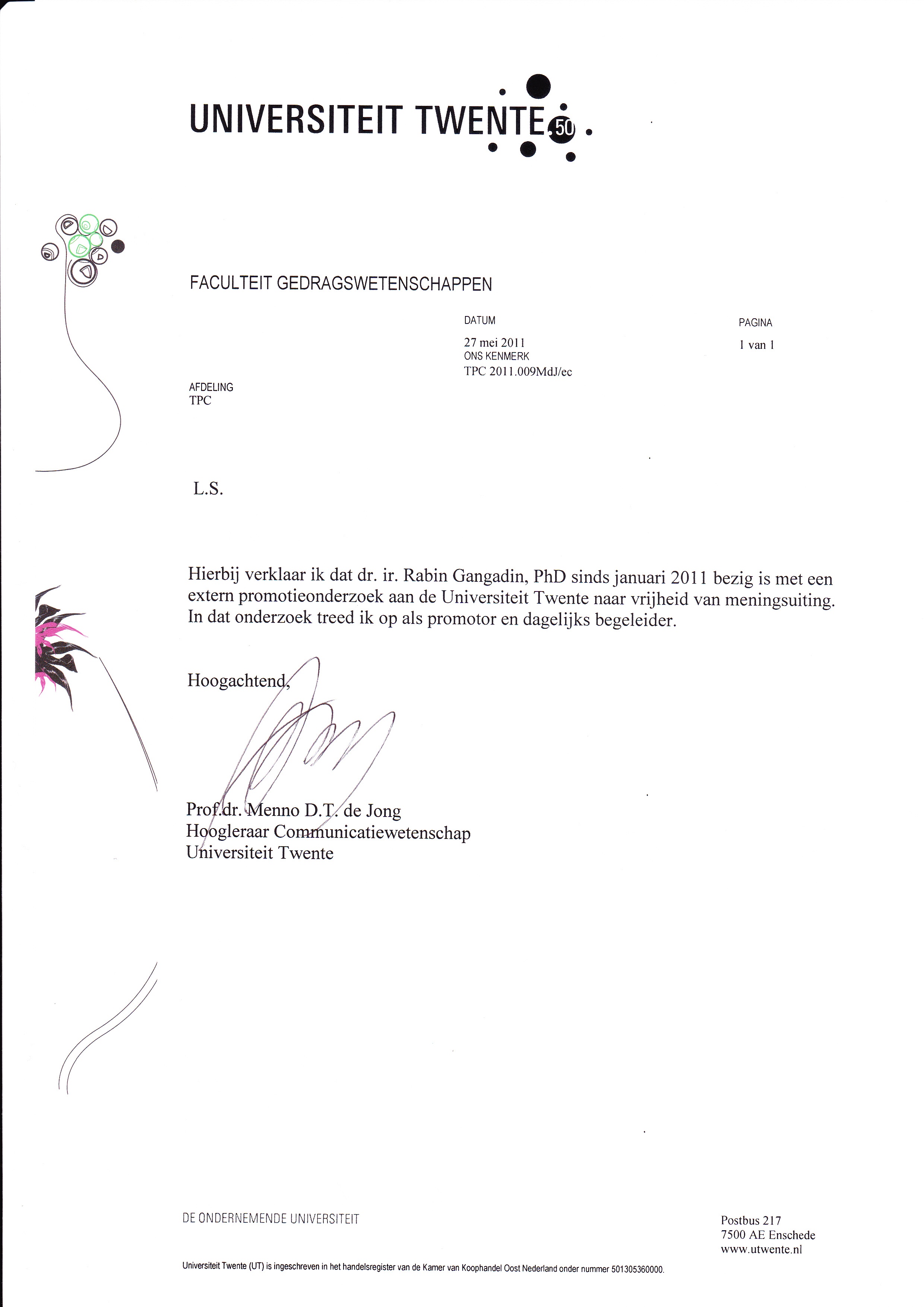 promotieonderzoek toegepaste communicatiewetenschappen aan de universiteit te Twente onder begeleing van Prof. Dr. M.T. De Jong