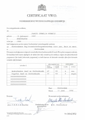 1990 Deelcertificaat Nederlandse en Engelse taal en letterkunde VWO, RAS (Albeda) Rotterdam